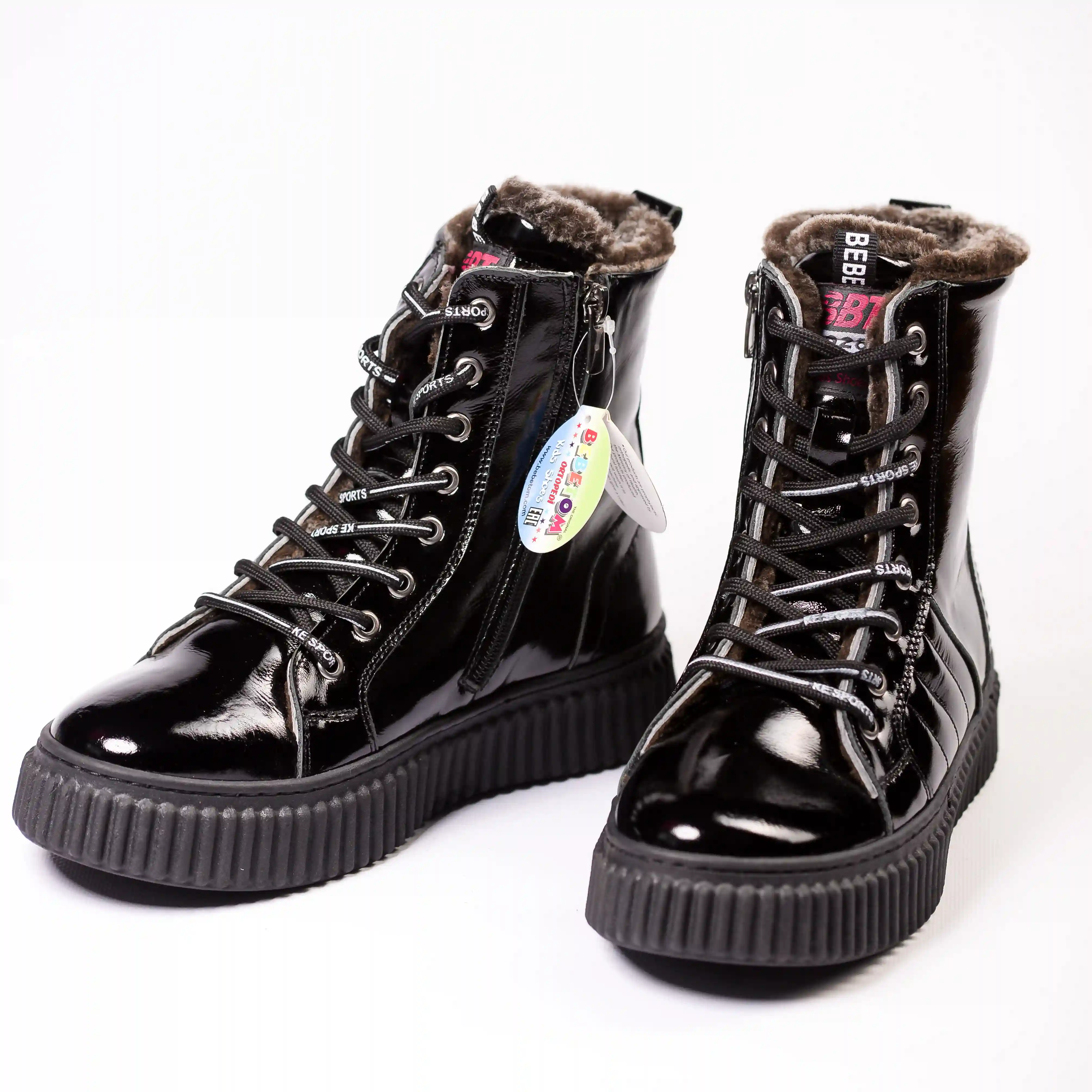 Шкіряні лаковані красиві та якісні зимові черевики BEBETOM
